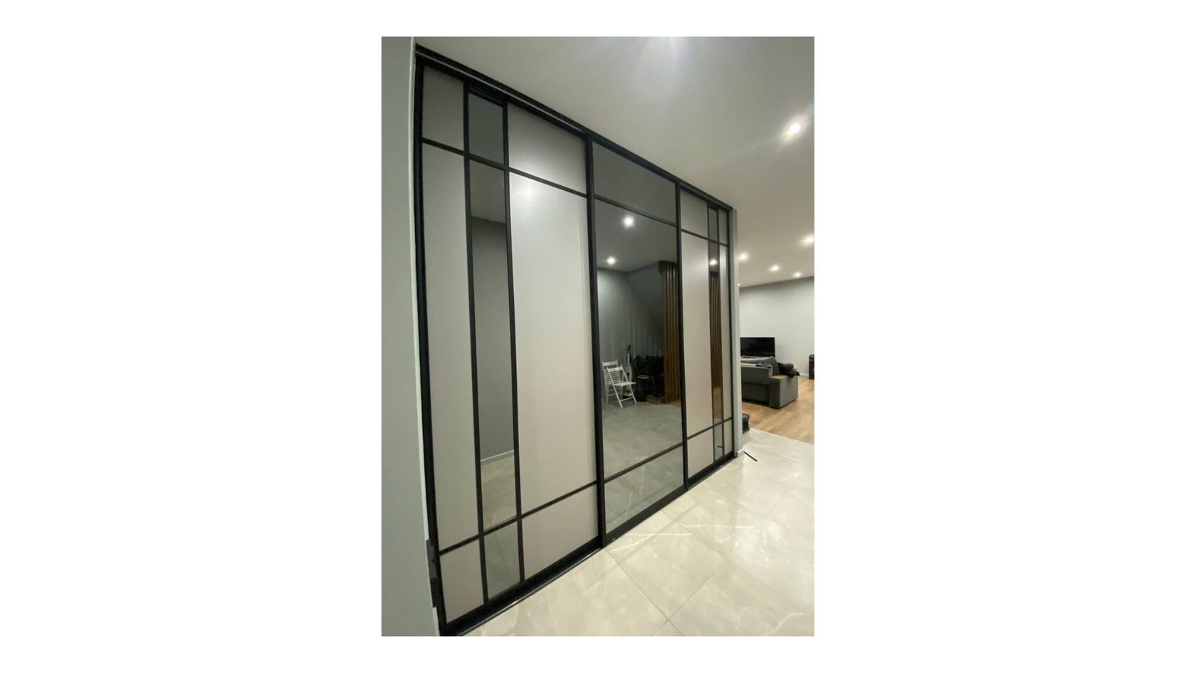 Двери купе: профиль кр-130 черный софт, зеркало графит и ЛДСП Титан ламарти;
